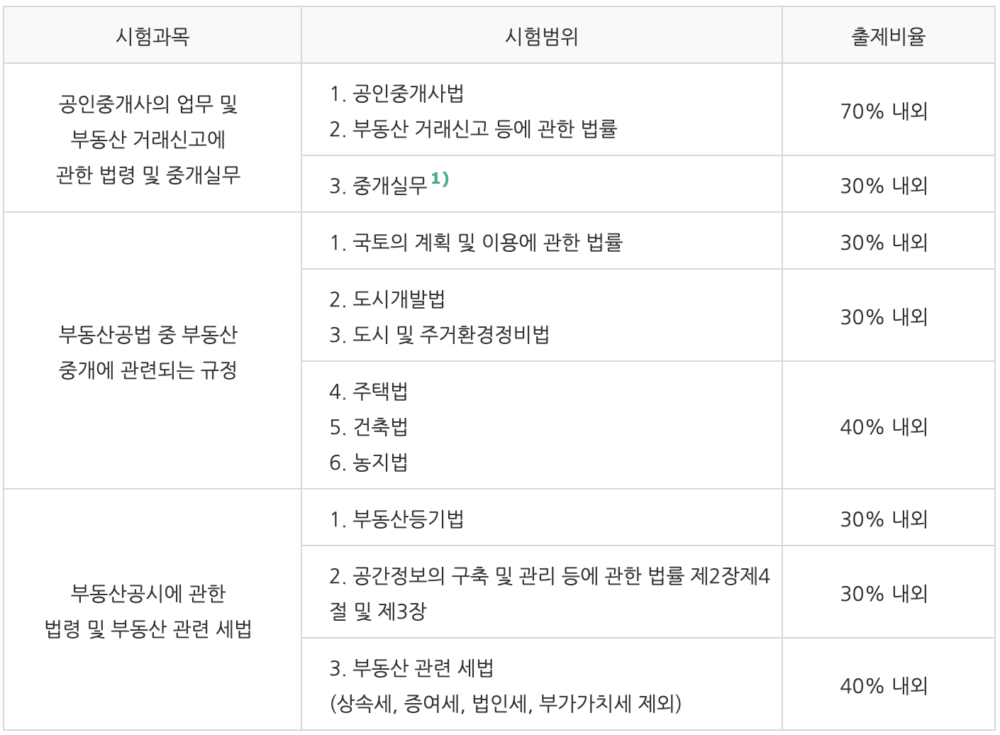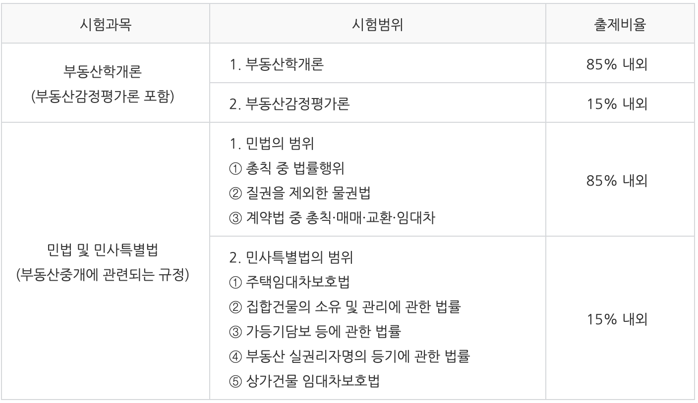 3) 공인중개사 시험과목 및 출제비중