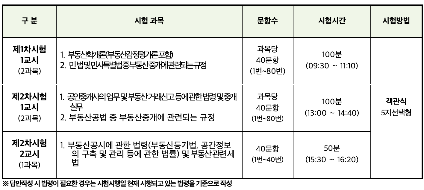 공인중개사 시험 정보