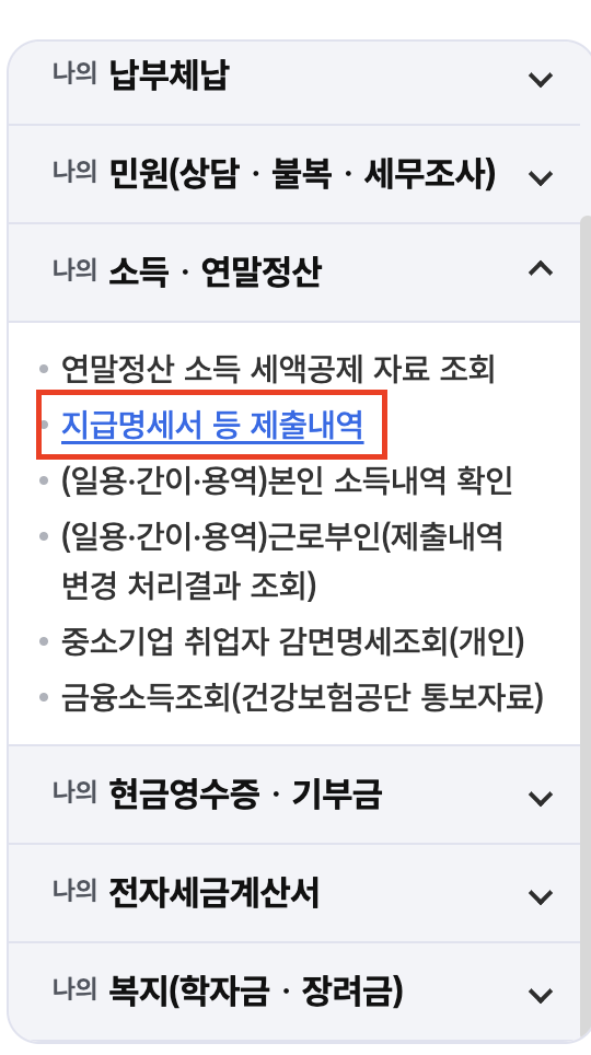 ※ 해당 서류는 해당 연도의 연말정산이 확정이 된 후에 확인, 출력이 가능합니다.