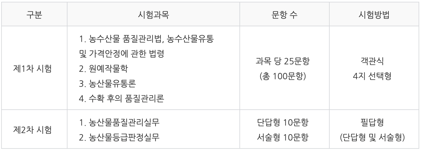 2) 농산물품질관리사 시험 과목