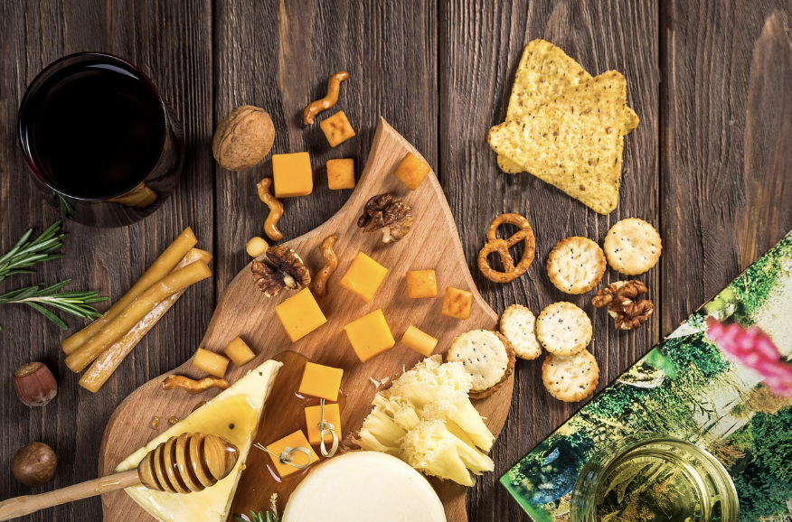 과일, 견과류, 크래커, 푸디아 등과 함께 여러 종류의 치즈를 치즈 플래터에 담아 다양한 맛과 질감을 즐깁니다.