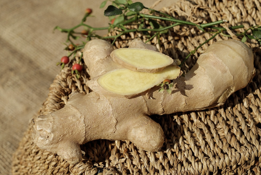끓는 물에 생강을 달여서 차로 마시면 감기로 인한 오한, 발열, 두통, 구토, 가래 완화에 도움이 됩니다.