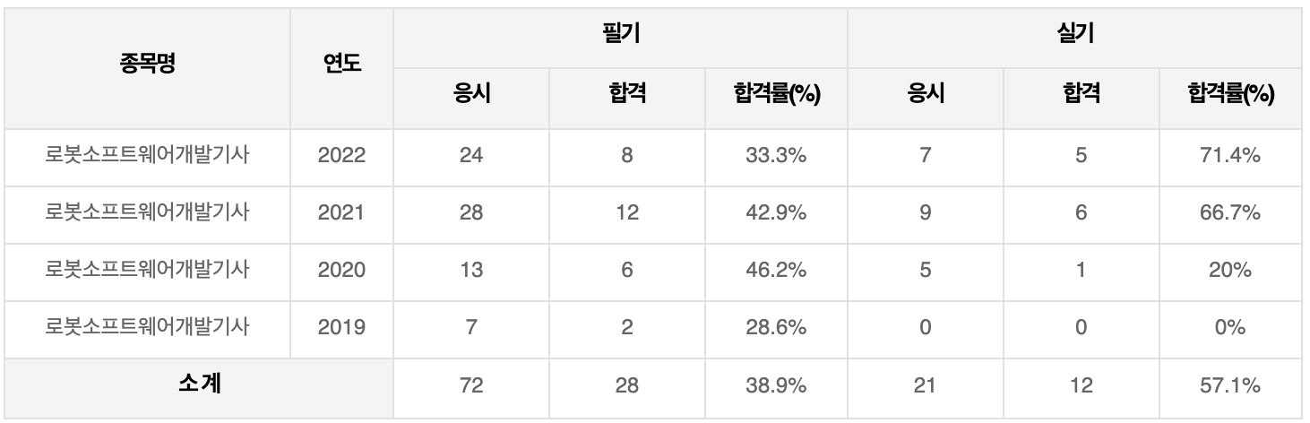 5) 로봇소프트웨어개발기사 합격률