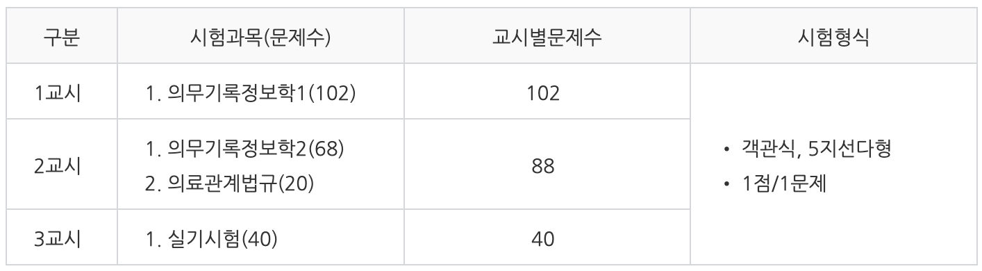3) 보건의료정보관리사 시험과목