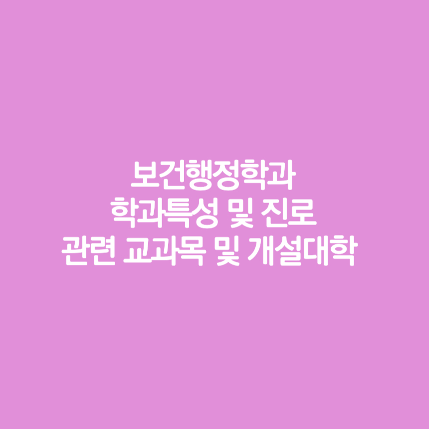 보건행정학과 학과특성 및 진로, 관련 교과목 및 개설대학에 대해 알아보았습니다.