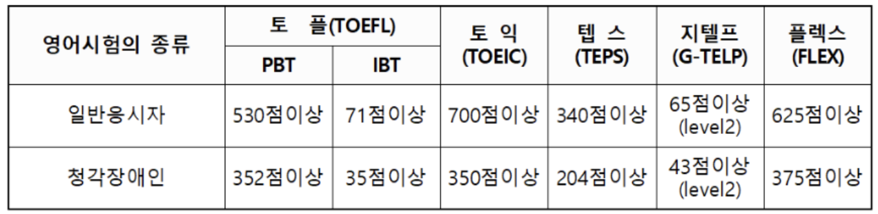 ➂ 대체 가능한 국내 영어시험 종류 및 점수