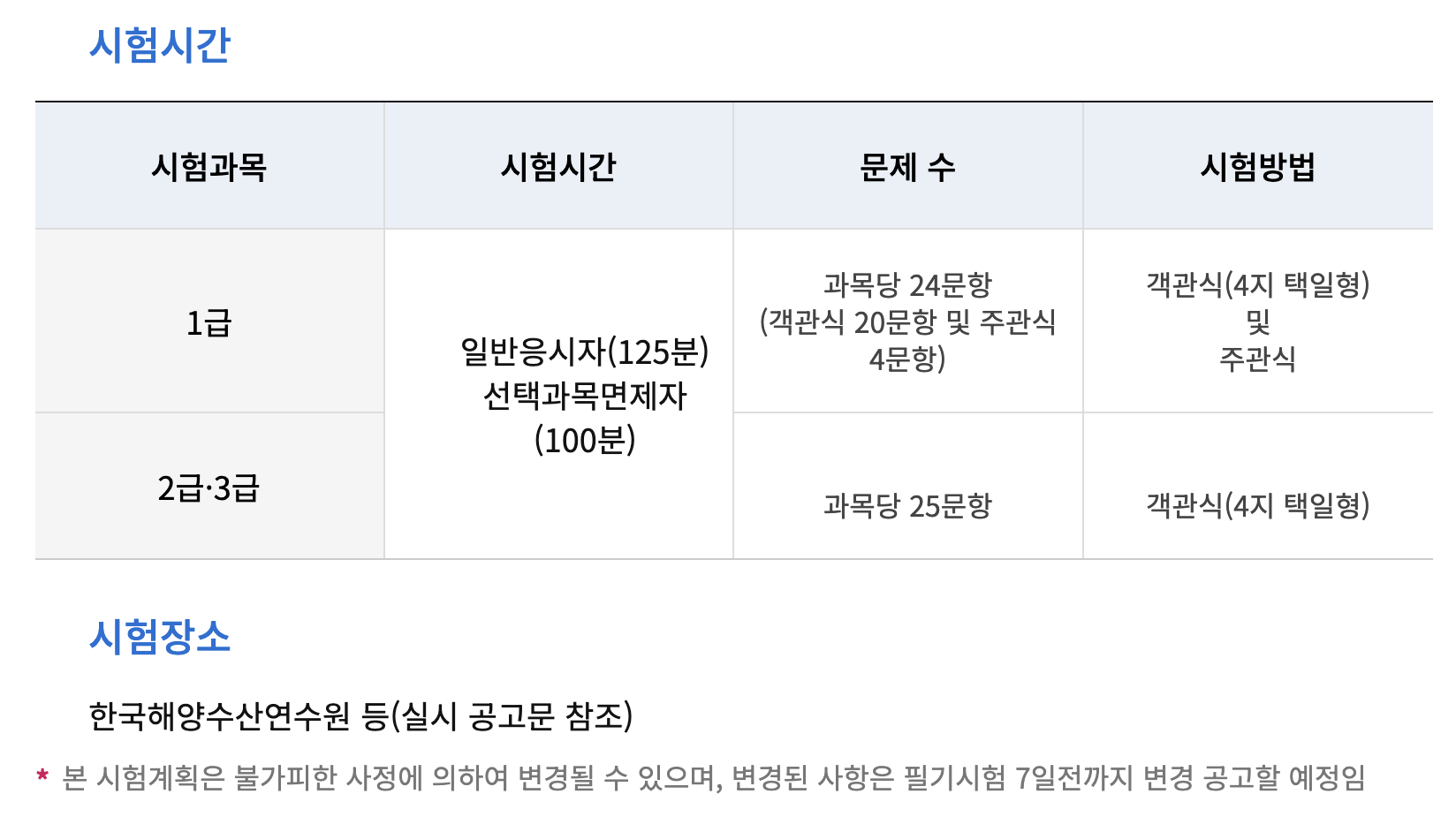 7) 선박안전관리사 시험시간 및 장소