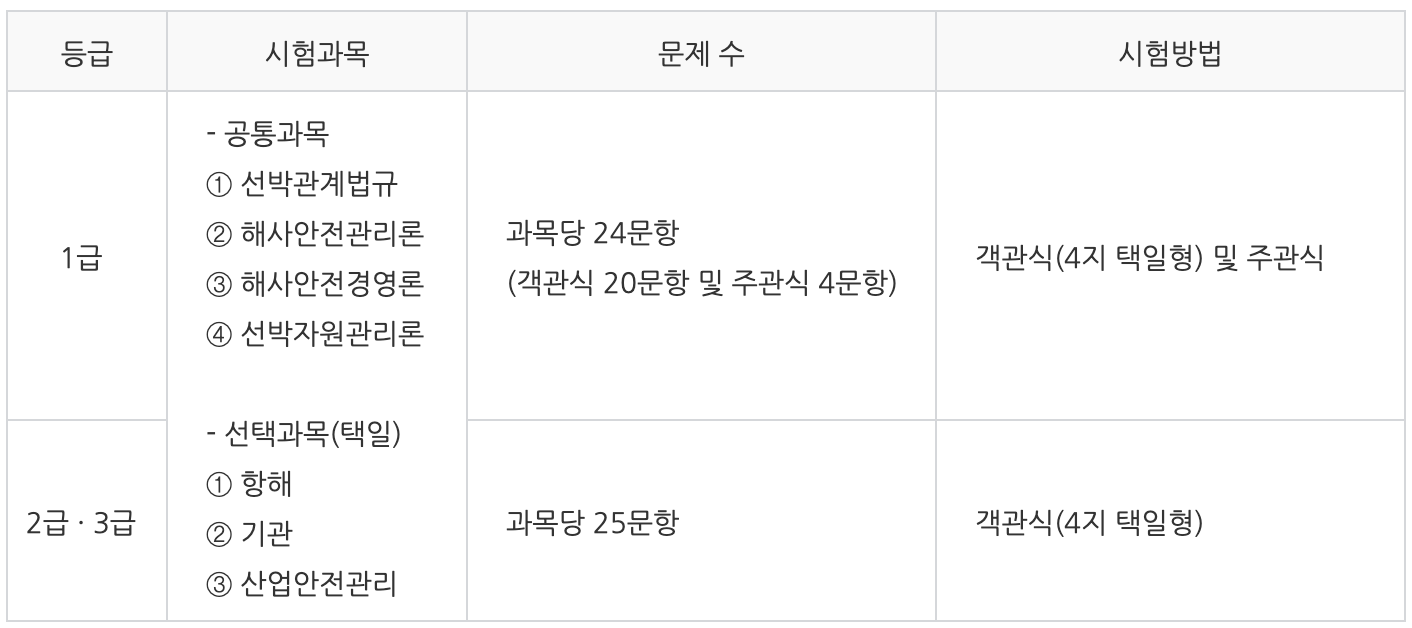 3) 선박안전관리사 시험과목