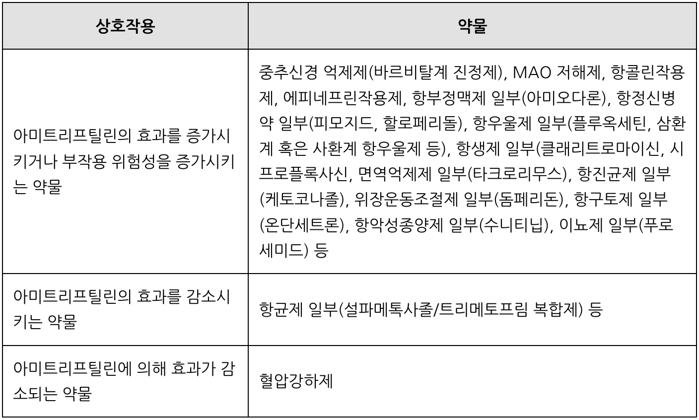 아미트리프틸린 약리작용 및 상호작용, 주의사항 및 부작용에 대해 알아보았습니다.