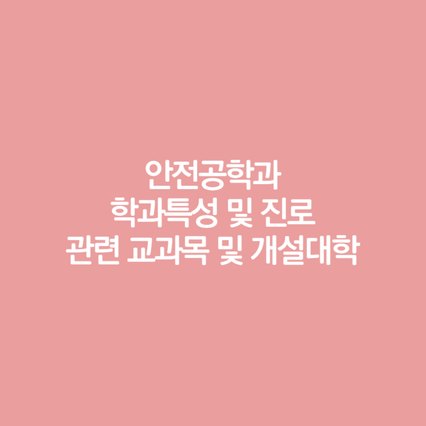 안전공학과 학과특성 및 진로, 관련 교과목 및 개설대학에 대해 알아보았습니다.