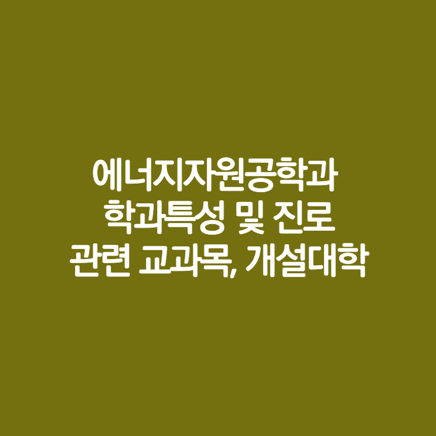 에너지자원공학과 학과특성 및 진로, 관련 교과목, 개설대학에 대해 알아보았습니다.