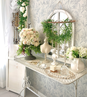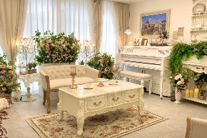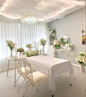 고급스러운 화이트 엔틱 인테리어와 다양한 조화, 피아노 등 방 모든 곳이 포토존으로 꾸며져 있는 곳입니다. 고급스러우며 화이트 톤의 깔끔함으로 인테리어 되어있어 브라이덜 샤워로도 많이 이용하는 곳입니다.