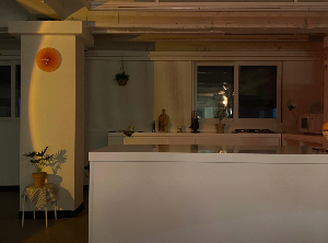 화이트, 블랙, 브라운 톤의 모던하며 세련된 인테리어 , 8인용 아일랜드 식탁, 감성 조명, 각종 모임 장소, 스포츠 관람, 쿠킹 스튜디오, 영상 촬영 (제품, 유튜브)이 가능한 룸입니다.
