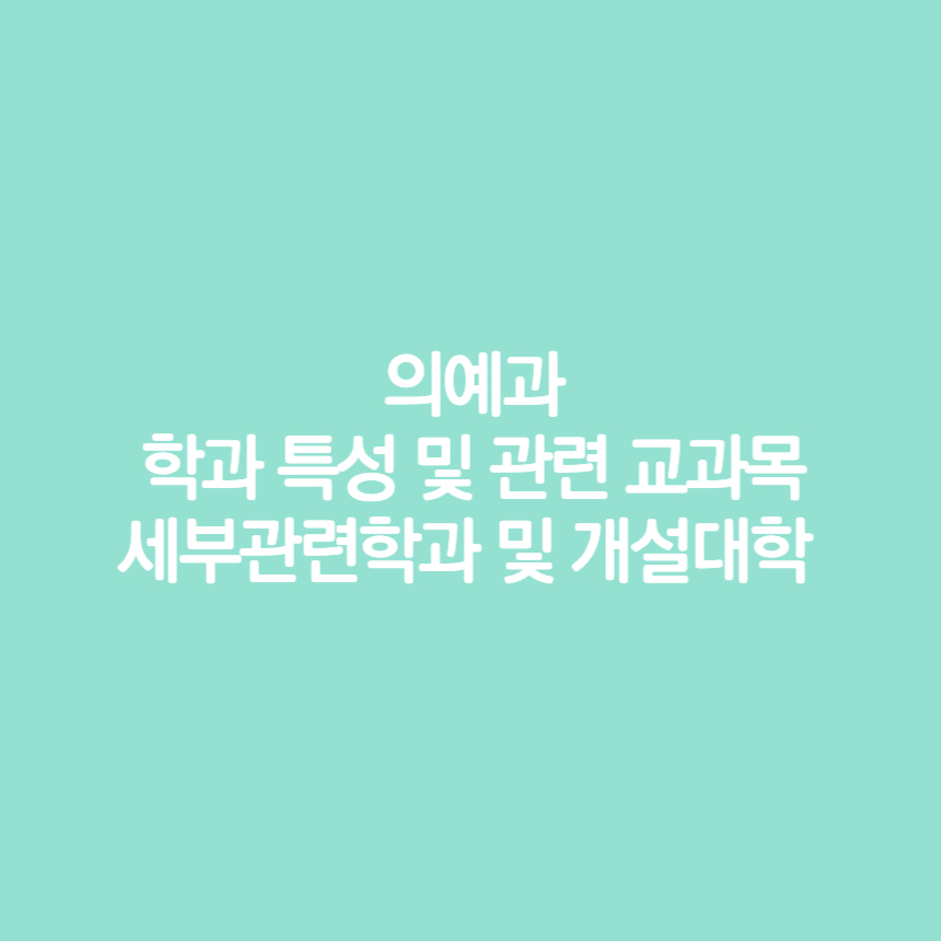 의예과 학과 특성 및 관련 교과목, 세부 관련학과 및 개설대학에 알아보았습니다.