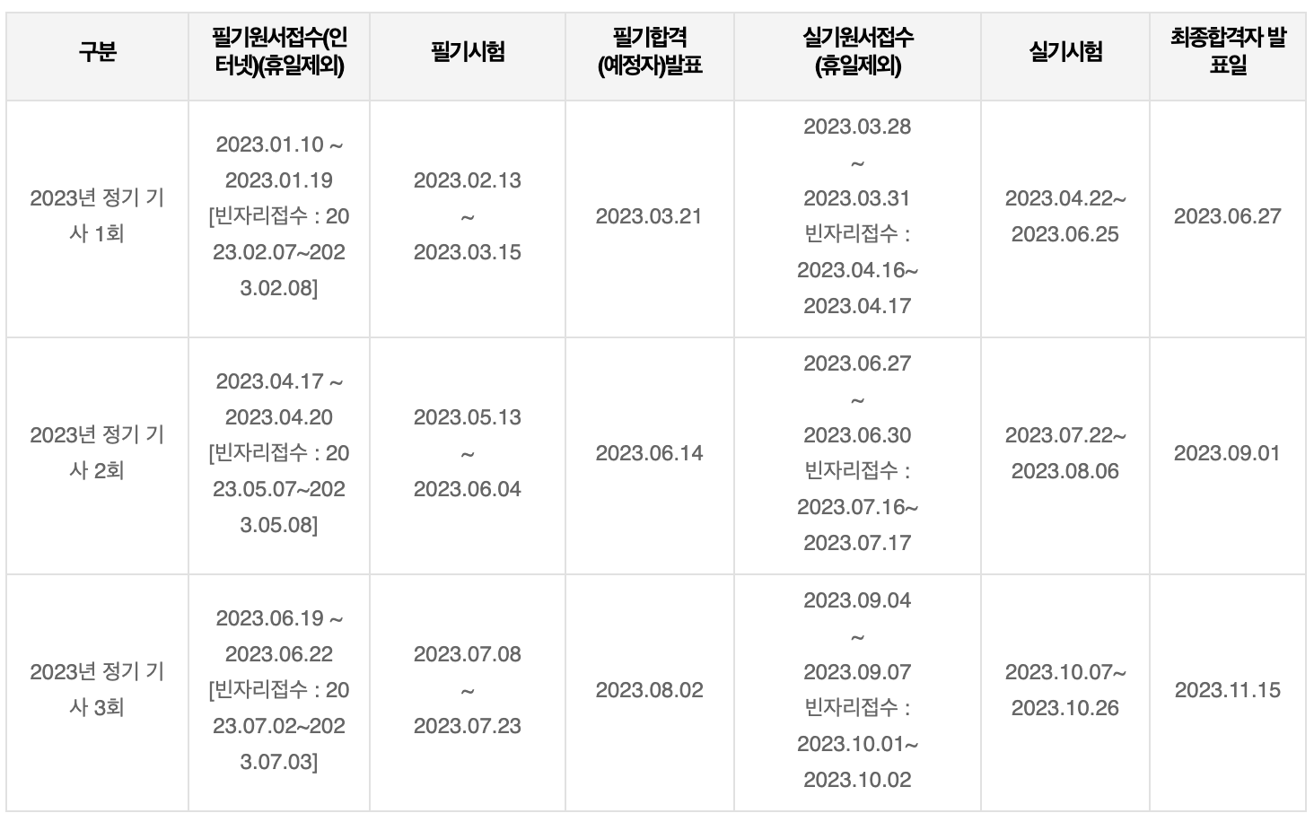 자세한 일정은 한국산업인력공단 홈페이지에서 확인 부탁드립니다.