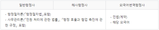 ② 행정사는 업무범위에 따라 일반행정사, 해사행정사, 외국어번역행정사로 나누어지며, 별개의 시험으로 시행됩니다.