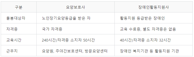 2) 요양보호사 차이점