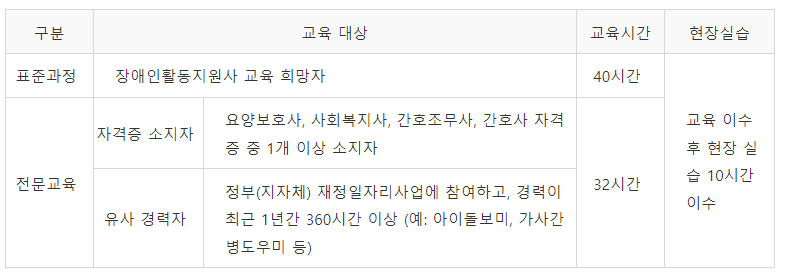 - 활동보조인 역할 : 이론 1시간