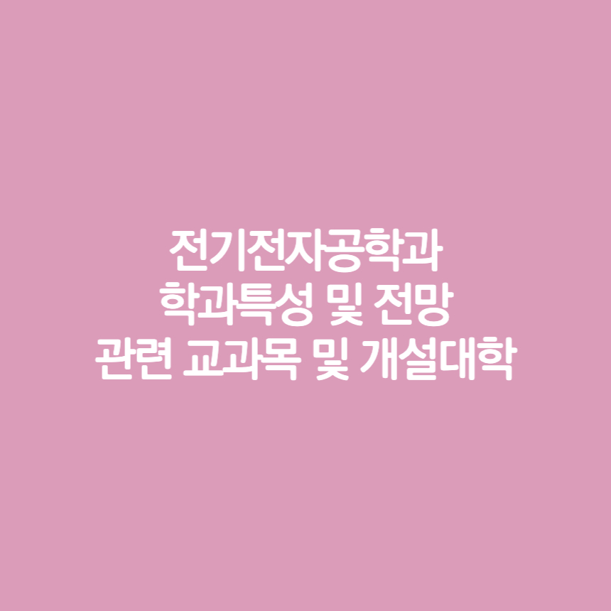 전기전자공학과 학과특성 및 전망, 관련 교과목 및 개설대학에 대해 알아보았습니다.