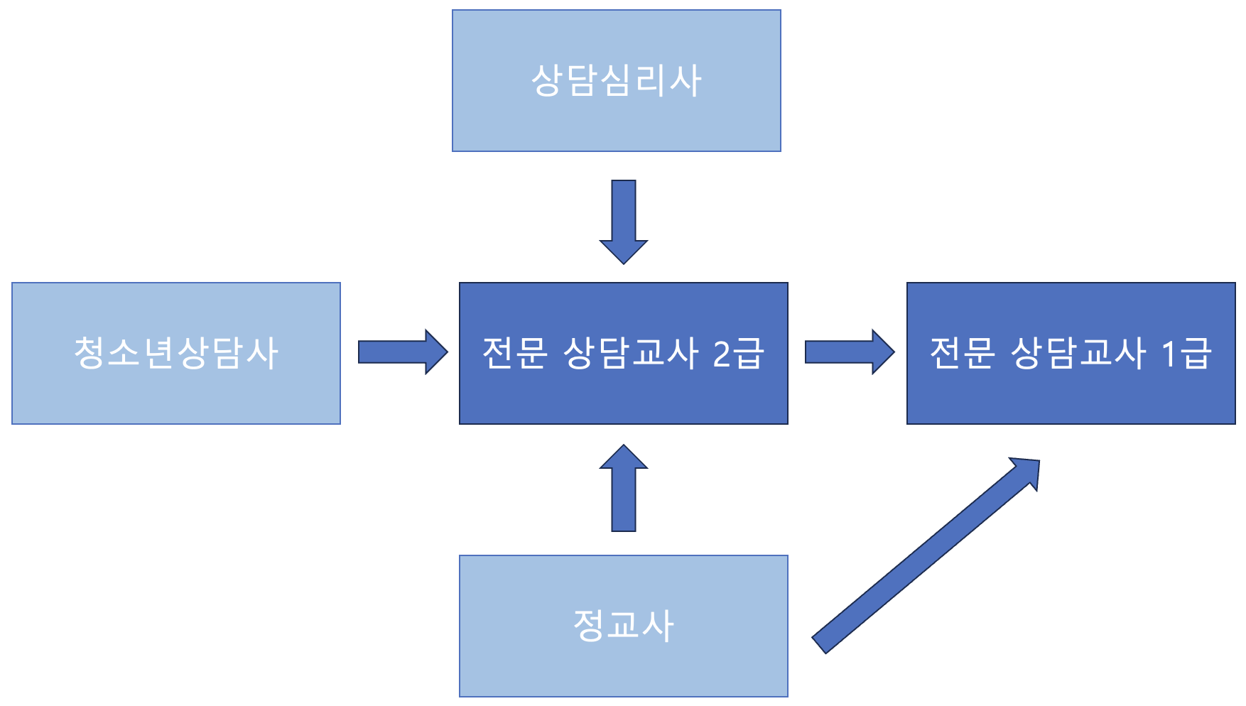 상담심리사는 상담분야에서 가장 인정받는 자격증이지만 상담심리사가 전문상담교사가 되려면 별도의 전문상담교사 취득과정을 거쳐야 합니다.