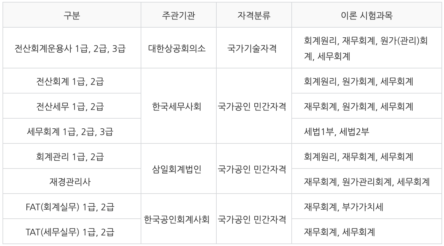 전산세무회계자격증 급수별 차이점 , 시험정보 총정리