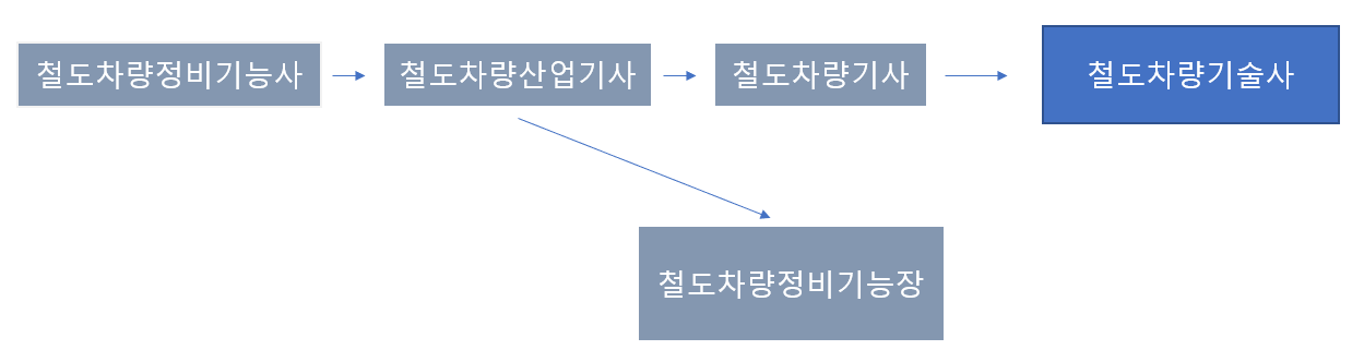 철도차량정비기능사 시험은 철도차량에 대한 기초를 다루며 산업기사, 기사, 기능장, 기술사 시험 응시에 도움을 줍니다. 기능사 자격을 취득한 후 동일직무분야에서 1년이상 실무에 종사한 자는 산업기사시험의 응시자격이 되고, 3년 이상 종사한 경우 기사시험의 응시자격이 주어집니다. 7년 이상 실무에 종사하면 기능장·기술사 시험에 응시할 수 있습니다.