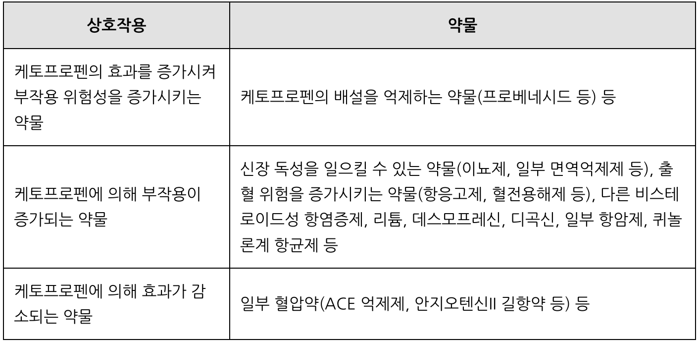 케토프로펜 약리작용 및 상호작용, 주의사항 및 부작용에 대해 알아보았습니다.