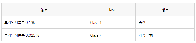 ▶ 트리암시놀론 외용제 농도에 따른 등급