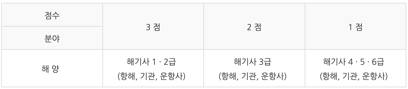 해양경찰, 소방직 공무원의 경우, 해기사(항해, 기관, 운항사)는 급수에 따라 가산점이 차등 인정됩니다.