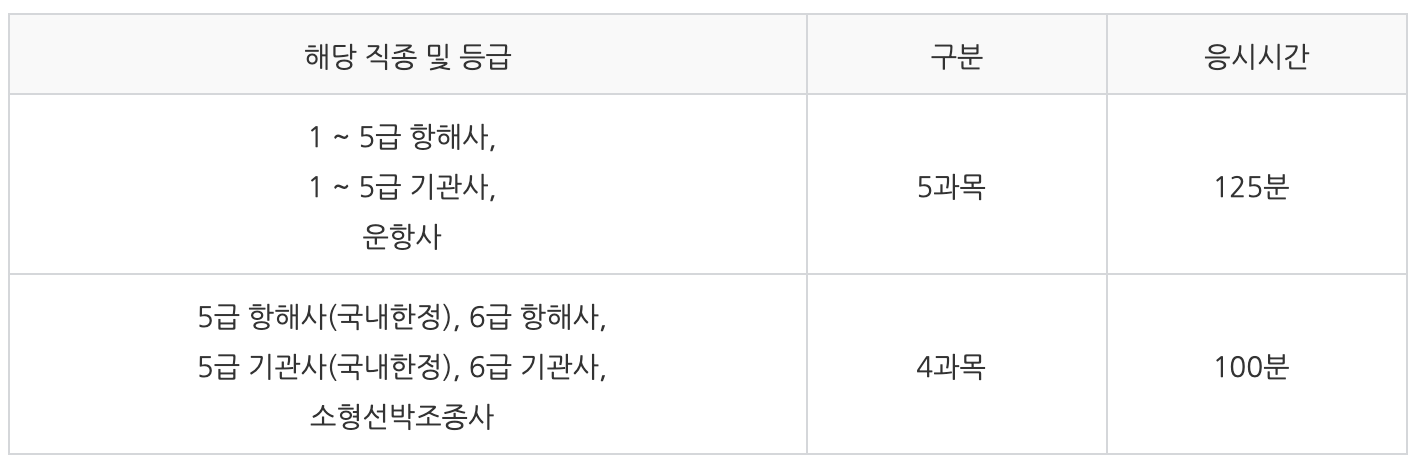 3) 해기사 시험시간