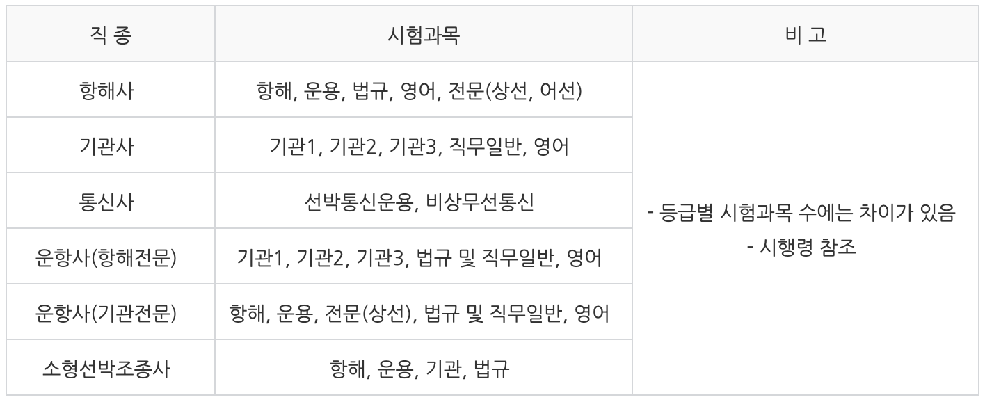 2) 해기사 시험과목