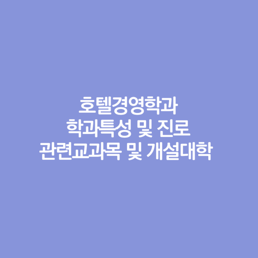 호텔경영학과 학과특성 및 진로, 관련교과목 및 개설대학에 대해 알아보았습니다.