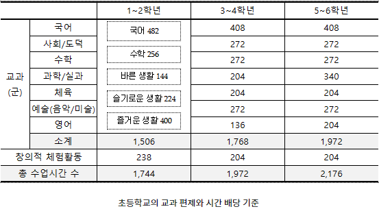 - 3~6학년의 경우 2015 개정 교육과정과 동일한 내용 유지