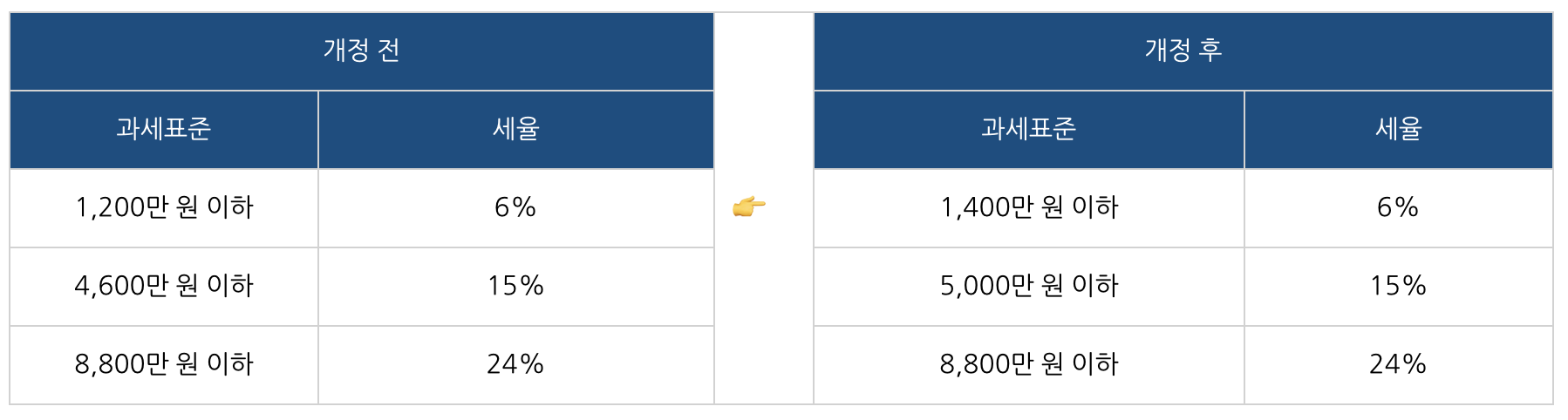 - 일부 과세표준 구간 변경