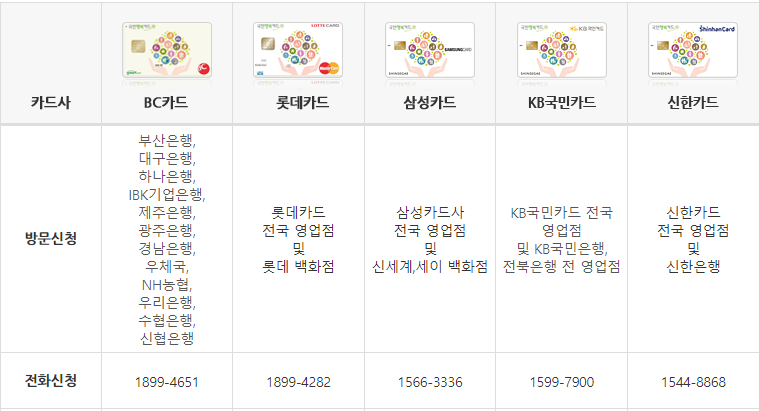 - 신청방법 : 온라인 신청 또는 카드사에 전화하여 국민행복카드 발급받은 후 바우처 신청
