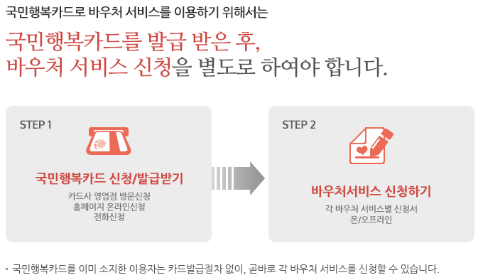 ※ 국민 행복카드를 발급받은 후, 바우처 서비스 신청을 별도로 하셔야 합니다.