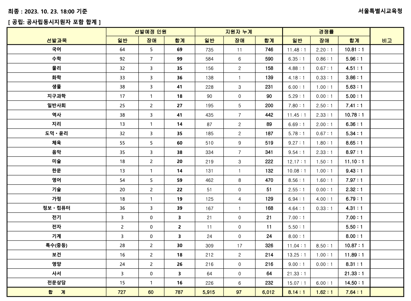 1. 서울시 교육청 중등임용고시 경쟁률
