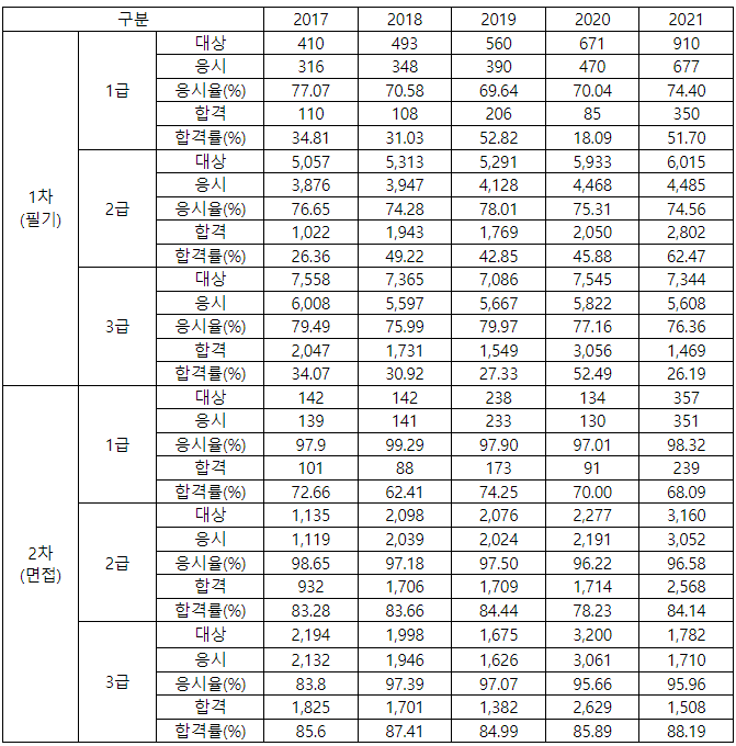 - 필수과목 (과목당 25문항) : 100점 만점 기준 각 과목당 40점 이상, 전 과목 평균 60점 이상